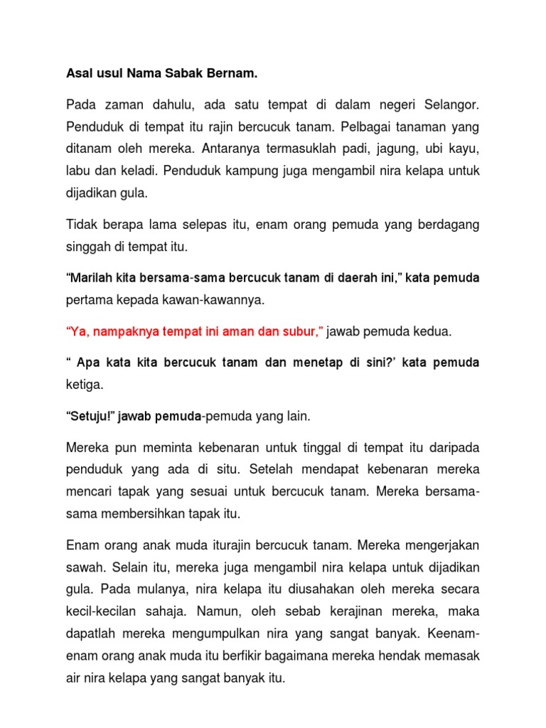 Asal Usul Nama Sabak Bernam