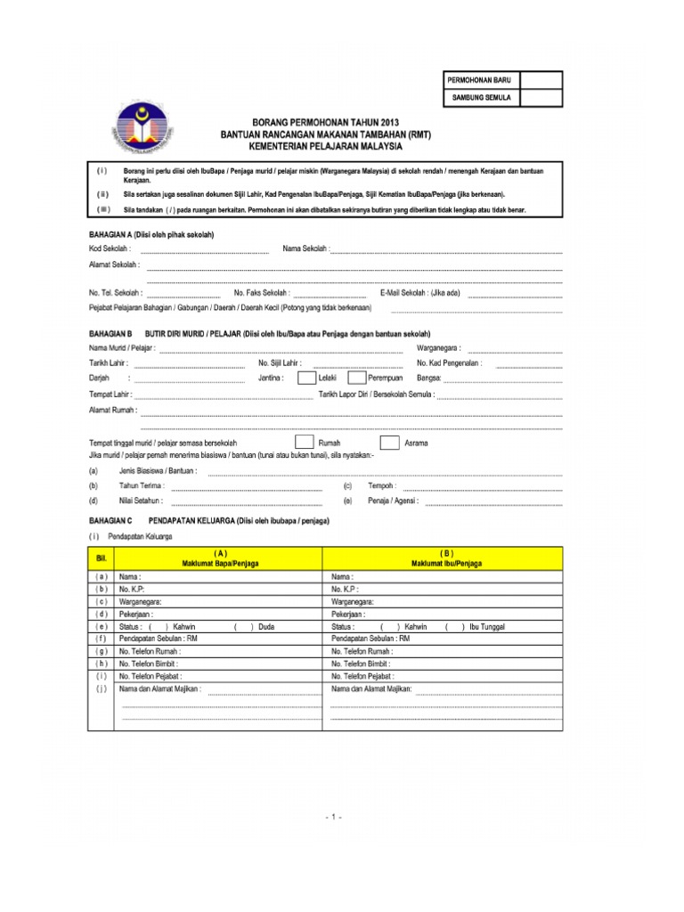 Borang Permohonan Rmt Terbaru Pdf Document