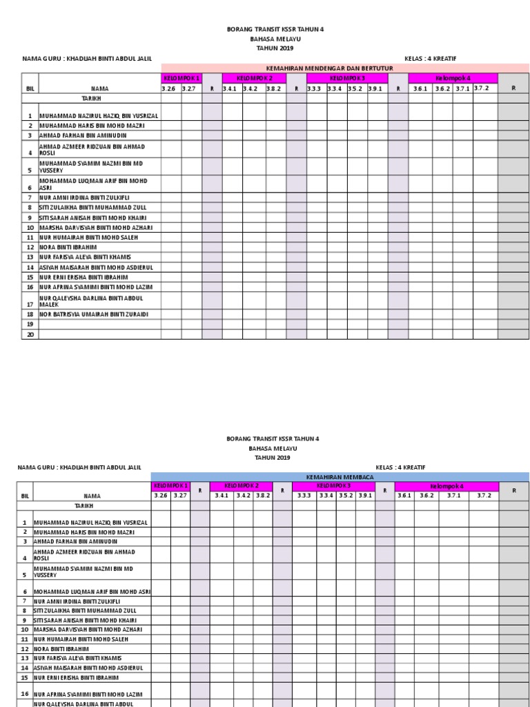 2 Borang Transit Pbd Bm Tahun 5 Kemahiran Membaca