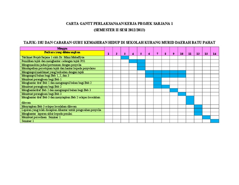 Carta Gantt Perlaksanaan Kerja Projek Sarjana 1 Doc