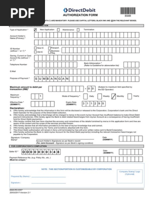 Direct Debit Authorization Form Maybank
