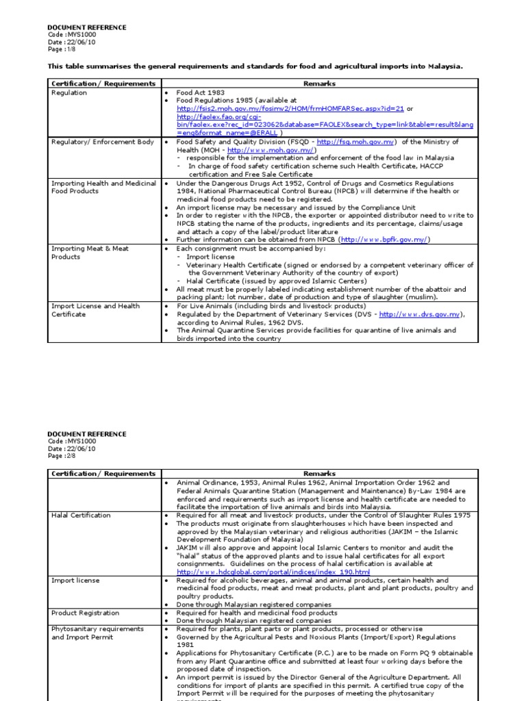 Overview Of Malaysian Food Regulation And Import Requirements Chemlinked