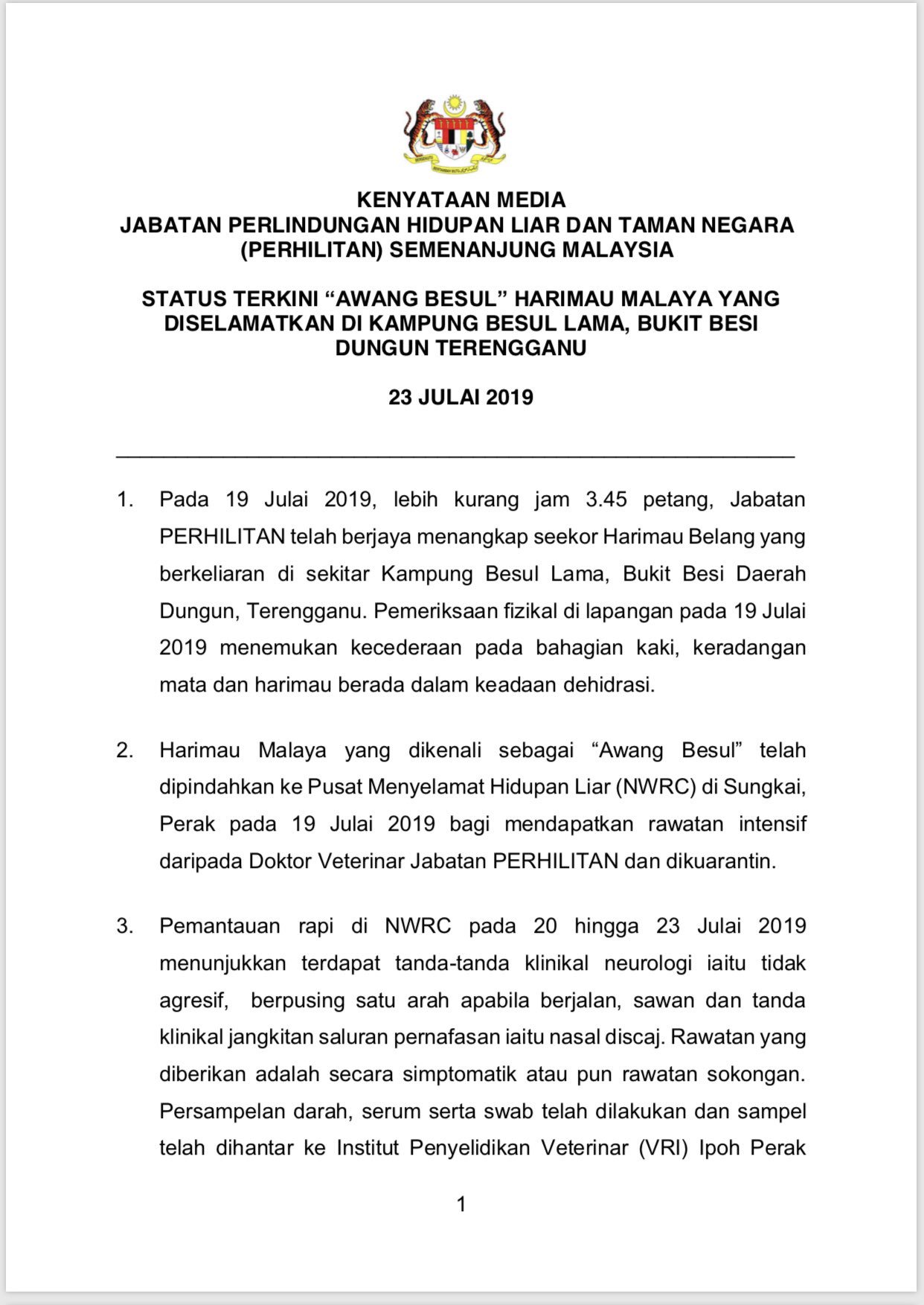 Bernama Radio Jabatan Perlindungan Hidupan Liar Dan Facebook