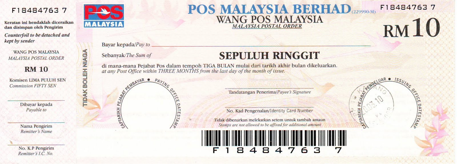1 Contoh Kiriman Wang Money Order Sample Malaysia Berhad 2299go M Kiriman Wang Malaysia Pos M 09 C 955195 Malaysia Malaysia Mal Pejabar Cap Pejabat Malaysia No Siri P Bat Nama