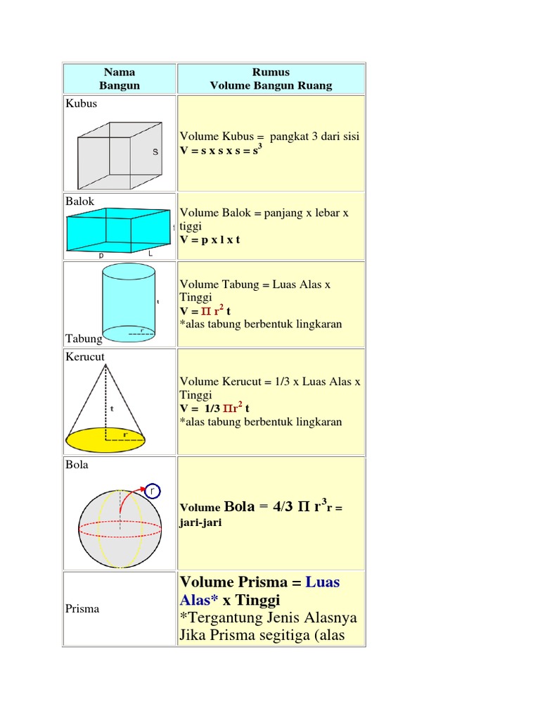 Rumus Volume Bangun Ruang Dan Macam Macamnya