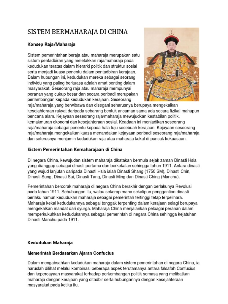 Bincangkan Peranan Maharaja Dalam Sistem Pentadbiran Pada Zaman Dinasti Ching