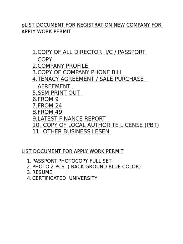 Plist Document For Registration New Company For Apply Work Permit Government And Personhood Document