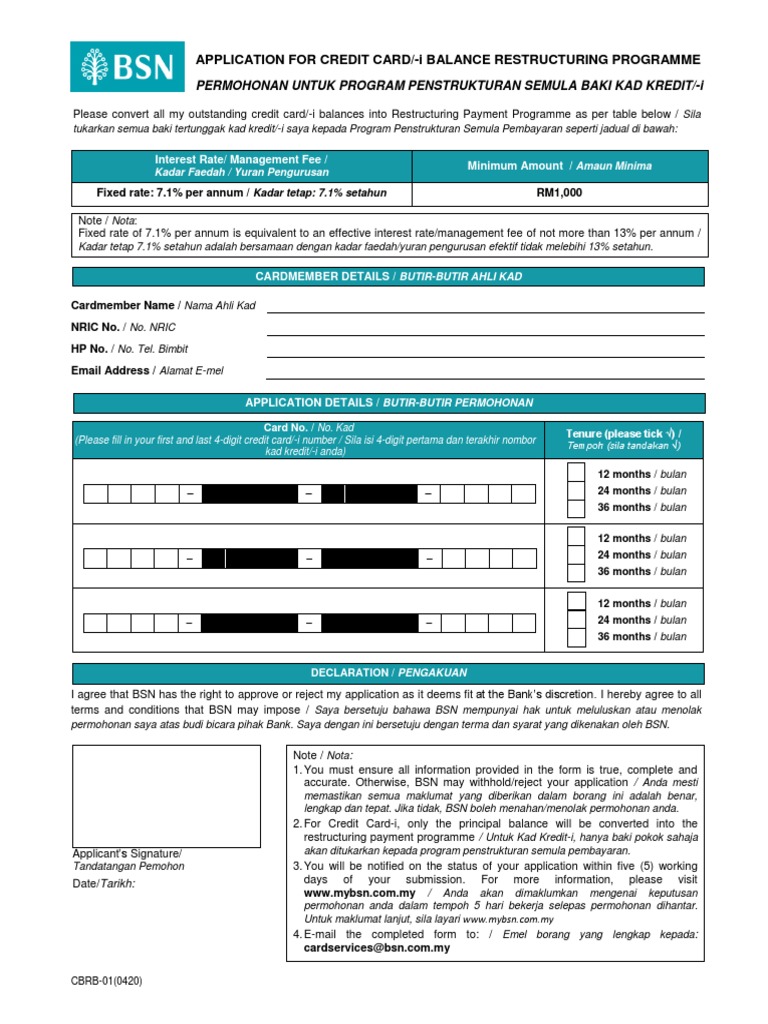 Application For Credit Card I Balance Restructuring Programme Personal Finance Money